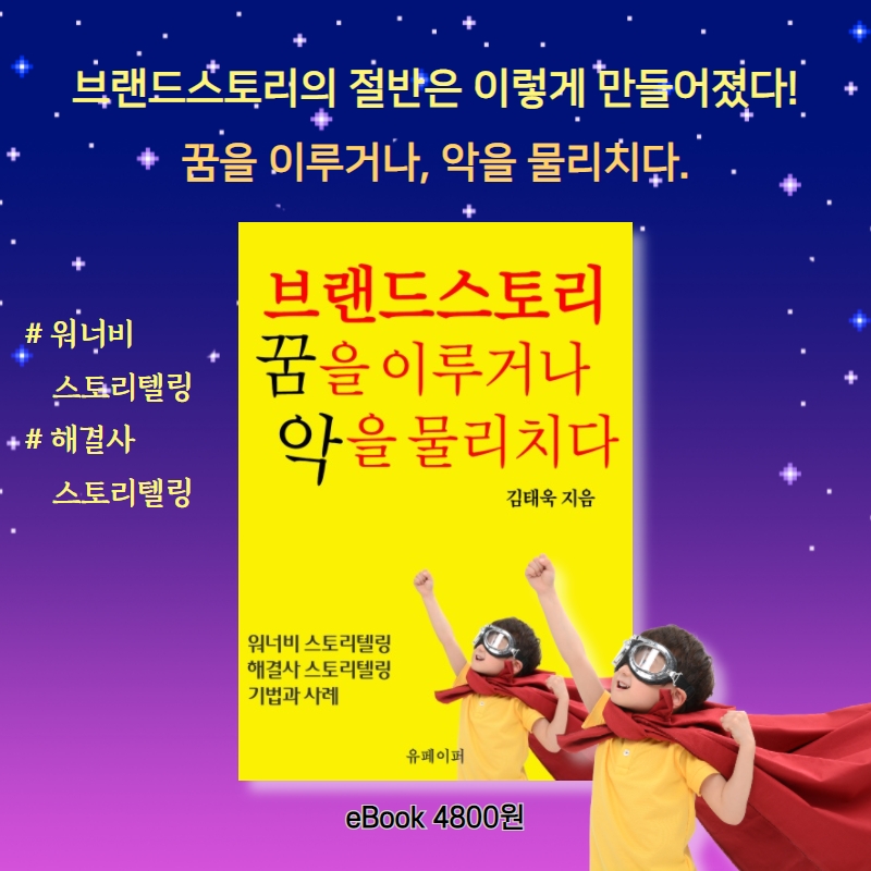 #브랜드스토리 로 고민하는 홍보맨과 마케터라면, #워너비스토리텔링 과 #해결사스토리텔링 기법을 익히고, 사례를 참고로 브랜드스토리를 개발하기 바란다. 당신의 브랜드가 고객의 꿈을 이루게 하거나 악당을 물리쳐주자.
