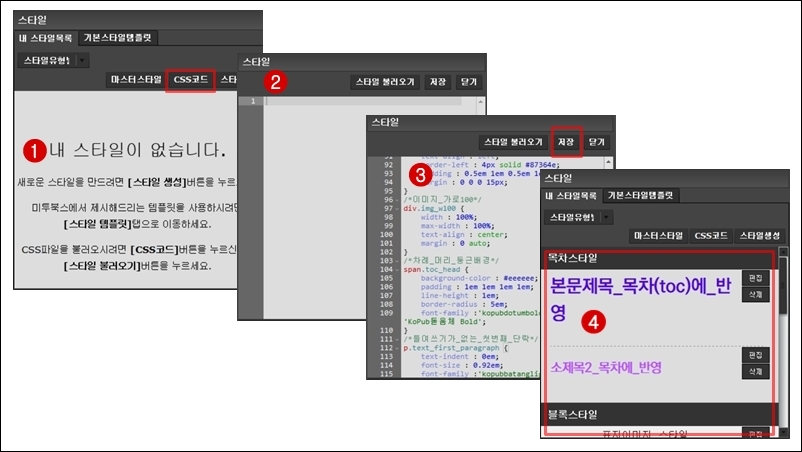 ④처럼 <내스타일목록>에 스타일이 보인다. 그리고 이펍을 만들면 된다.