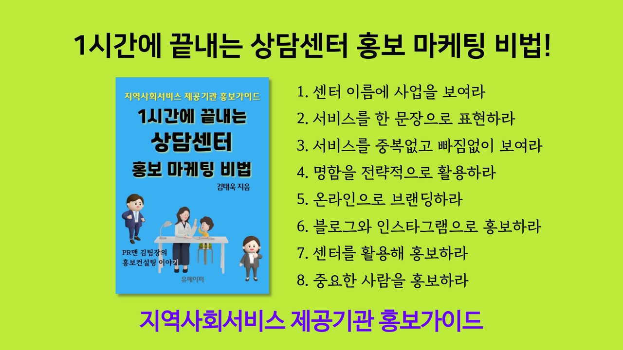 『1시간에 끝내는 상담센터 홍보 마케팅 비법』 중 "센터 이름에 사업을 보여라"에서