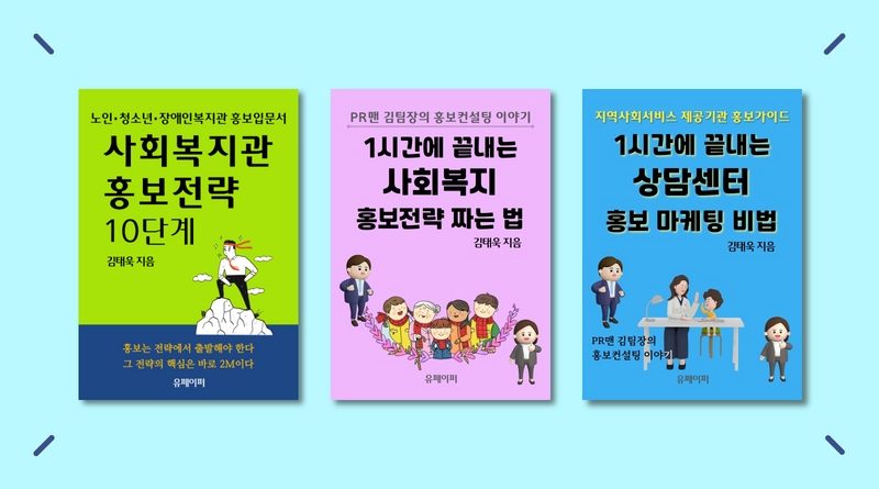 사회복지기관, 전국 사회복지협의회, 지역 사회복지관, 지자체 복지재단, 사회서비스 제공기관, 심리상담센터 등 비영리 기관의 역할은 갈수록 중요해지고 있고, 또 사회복지기관 홍보 마케팅은 해마다 더 필요해졌다. 필자는 이들 복지기관에서 홍보 마케팅 강의와 컨설팅을 수년간 진행하면서 좀 더 홍보 마케팅을 효율적으로 실행하는 방법에 대해 연구해 몇 권의 전자책으로 출간했다.
