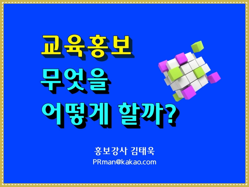나는 교육청, 교육지원청, 학교 교직원 등 교육기관 공직자 대상으로 홍보 강의를 자주 했다. 그런 인연으로 '교육홍보'에 관심을 갖게 되어 관련 자료를 찾아봤더니, 교육홍보에 관한 책이나 자료가 전무했다. 그래서 나름 '교육홍보' 개념을 정리하고 교육홍보 책을 쓰게 됐다.