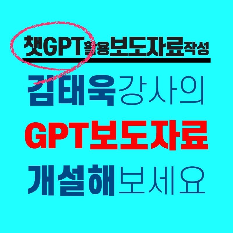 기업홍보팀에서 20년가량 근무하고, 보도자료 강의를 10년 이상 한 필자(홍보강사 김태욱)는 최근 ‘챗GPT를 활용한 보도자료 작성법’이란 전자책을 발행했다. 그리고 현재 하고 있는 보도자료 강의에 이를 추가해 'GPT 보도자료 강의' 커리큘럼을 만들었다. 주요 커리큘럼은 다음과 같다.