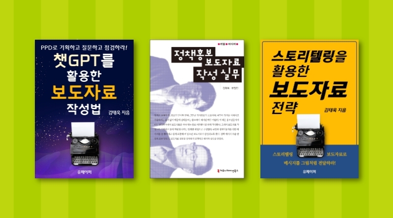 보도자료 강의하면서 보도자료 관련 책도 썼다. 가장 먼저 쓴 보도자료 책은 《정책홍보 보도자료 작성 실무, 2020, 커뮤니케이션북스》로 정부부처, 공공기관, 지자체 정책홍보와 보도자료 작성에 관한 책으로 법무부 한정진 언론담당관과 힘께 썼다. 두 번째는 전자책으로 쓴 《스토리텔링을 활용한 보도자료 전략, 2021》으로 스트레이트 보도자료에 스토텔리텔링을 담는 방법에 관한 책이다.