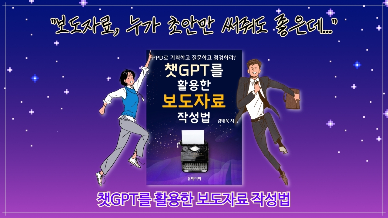 나는 챗GPT를 새로 들어온 홍보팀원이나 인턴사원 정도로 생각한다. 그래서 보도자료를 쓰라고 할 때, 가능한 명확한 지시를 내려야 한다. 그 과정이 보도자료 기획이다. 이 기획을 하려면 보도자료 기본구조와 6요소를 알아야 한다. 그리고 챗GPT에게 프롬프트에 명령을 해야 한다. 그 구조에 따라 6요소를 하나씩 요청하고, 그리고 수정하고 또다시 후속 명령을 주며 연달아 질문법을 해야 한다. 최종적으로는 전체 문단, 문장, 제목, 인용 등을 꼼꼼히 살펴야 한다.