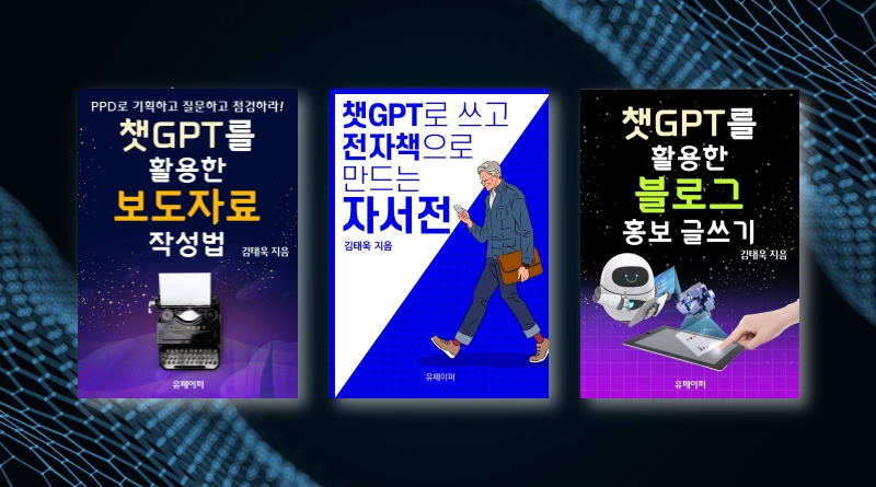 세 번째 챗GPT 관련 책이다. 이 책 《챗GPT를 활용한 블로그 홍보 글쓰기》에는 챗GPT 활용 블로그 홍보 글쓰기와 블로그 홍보 전략, 둘 다 담았다.