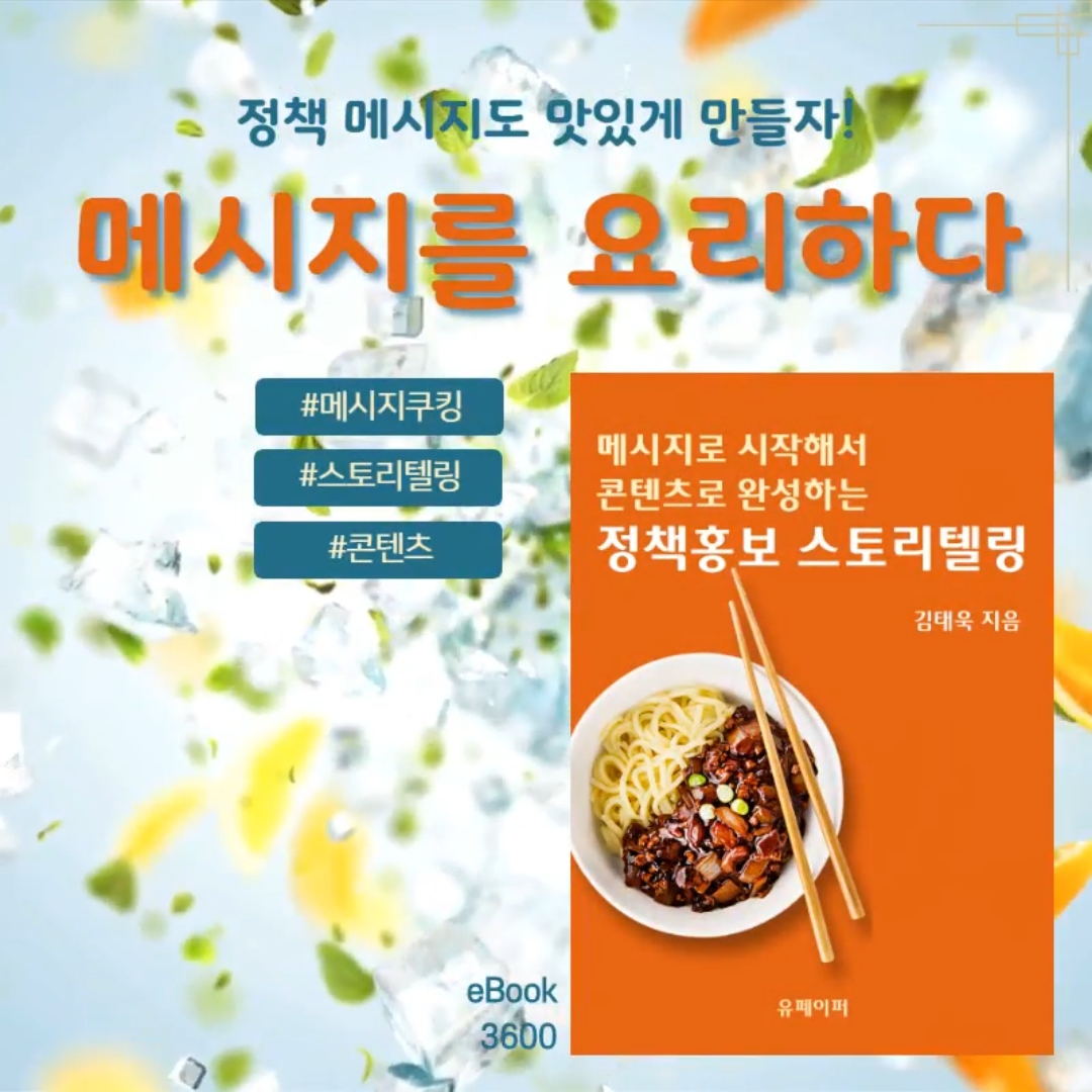 이번에 전자책으로 발간하는 ‘메시지로 시작해서 콘텐츠로 완성하는 정책홍보 스토리텔링’는 그동안 정부부처와 공공기관 강의에서 다뤘던 내용을 좀 더 체계적으로 정리했다.